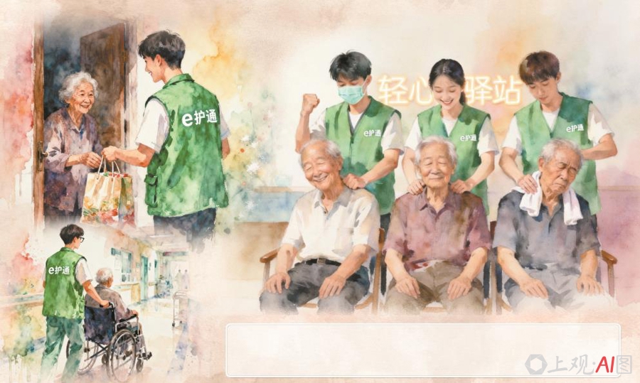 e护通专科东说念主员为社区老东说念主提供上门免费贪图与节日慰问、陪诊陪检、专科推拿理疗等做事。